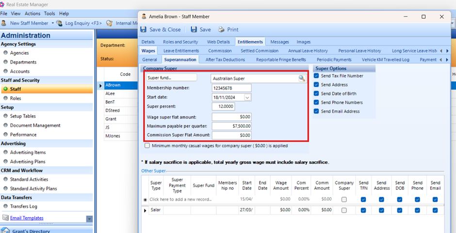 This guide explains how to set up super funds in Real Estate Manager and assign them to employees.