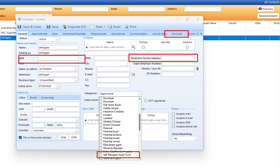 If the super fund is not listed, you will need to create a new contact.